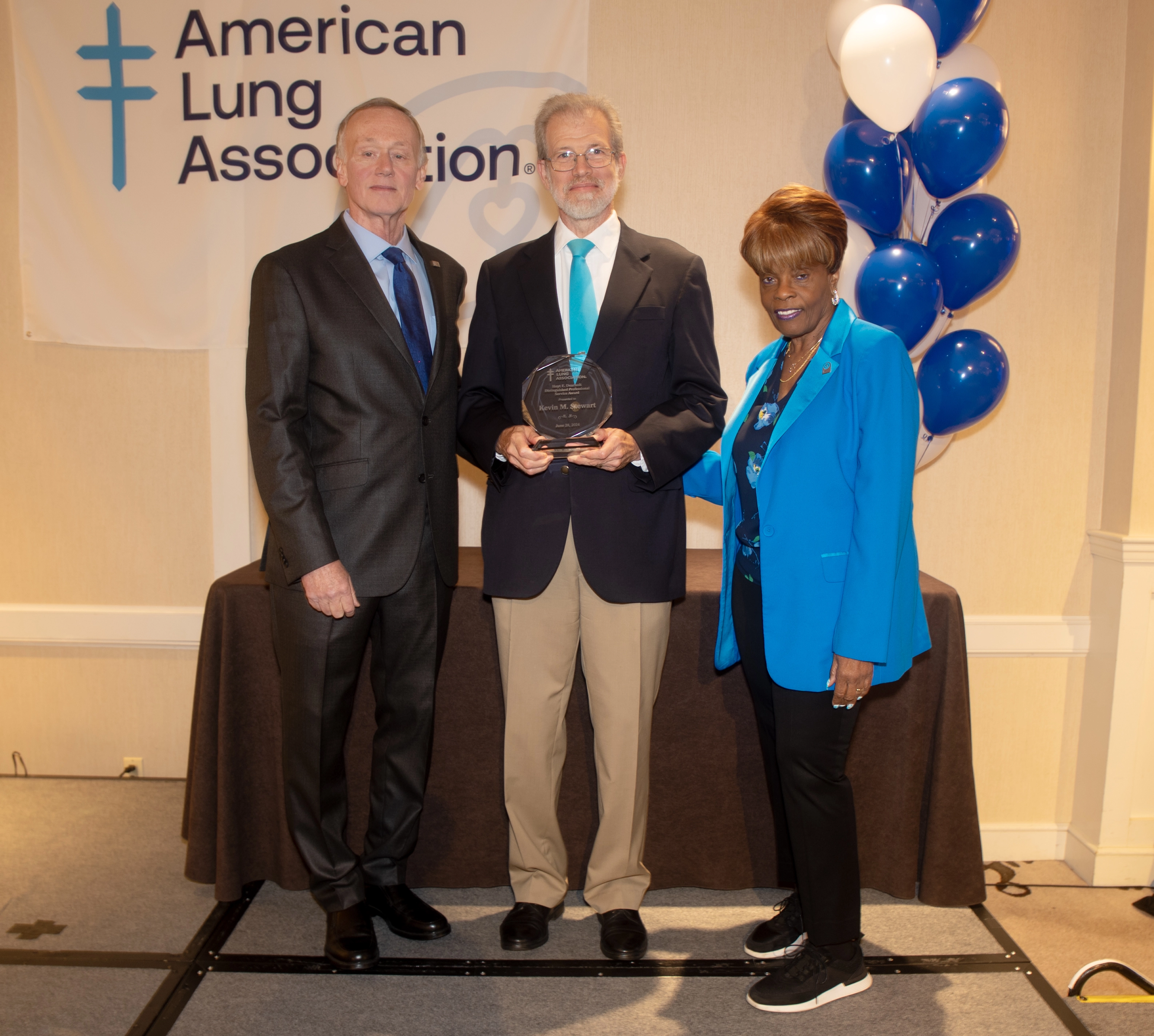 Stewart continues to be a leading voice for healthy air and its health effects for the Lung Association and has been instrumental in shaping the nationwide healthy air program through his work during the past 37 years. (Pictured here left to right, downloadable: Harold Wimmer, President & CEO, American Lung Association, Kevin Stewart, and Cheryl Calhoun, Immediate Past Chair of the American Lung Association National Board of Directors).